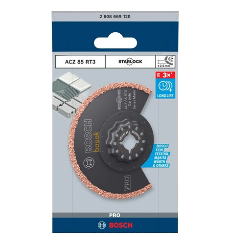 The Bosch RT3 Saw Blade (85mm diameter, 2.5mm kerf) is a high-performance cutting accessory designed for precision work with wood and wood-based materials. Manufactured from premium hardened steel with triple chip ground teeth (RT3), it delivers clean, accurate cuts with reduced vibration. Suitable for use with compact circular saws and plunge saws, this blade is engineered for durability and long service life, making it ideal for both professional tradespeople and DIY users.