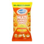 Duzzit Multi‑Surface Wipes (Orange, 60 pack) are biodegradable cleaning wipes made from plant fibres and infused with natural orange oil.