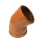 The FloPlast Underground Bend 45° Terracotta 160mm 6D563 is a strong uPVC fitting designed to create a smooth 45‑degree change of direction in 160mm underground drainage systems. Its push‑fit socket provides a secure, watertight connection suitable for foul water and surface water applications. The fitting maintains excellent flow performance and integrates seamlessly with all FloPlast 160mm underground drainage components.